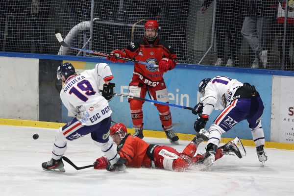 Puh, das schmerzt! Unsere Jungs kämpfen sich nach einem 3-Tore-Rückstand zurück in das Spiel, geben es dann aber kurz vor Schluss wieder aus der Hand und scheiden somit im zweiten Spiel der Halbfinal-Play-Offs gegen den ESC Dorfen aus.