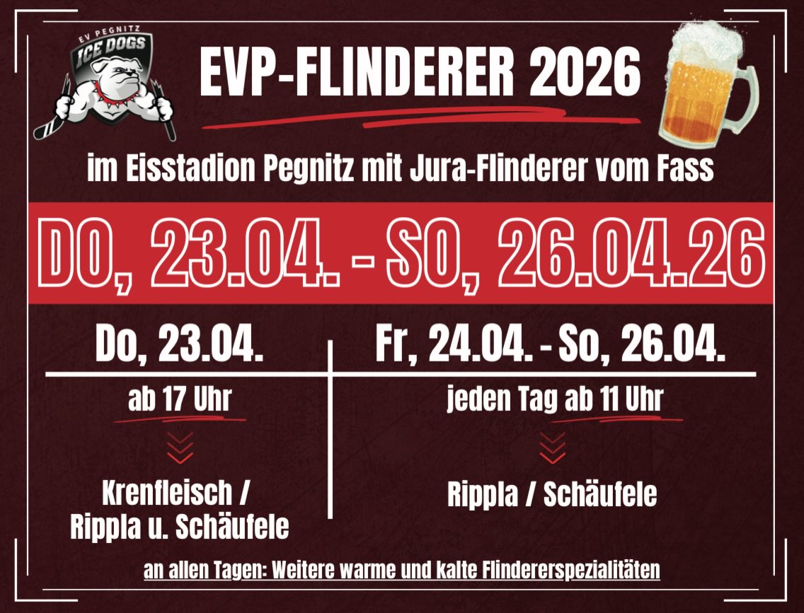 Kommt ins Eisstadion, bringt Hunger und Durst mit und erlebt ein paar schöne Stunden beim EVP-Flinderer!
